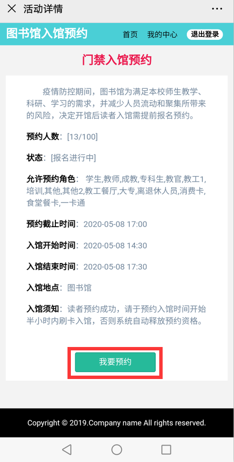 第四步、点击“我要预约”,输入手机号,确定即可申请成功。